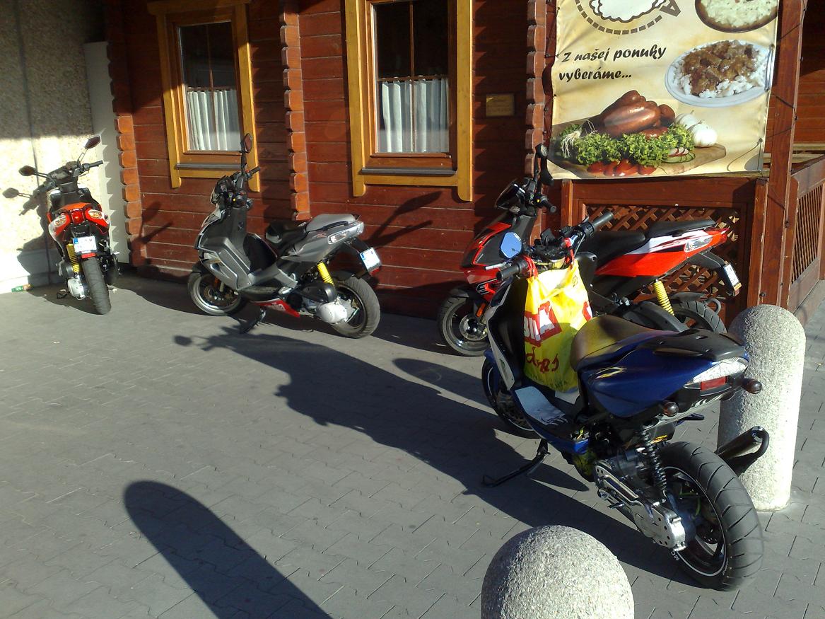 a bohuzial opravoval, opravoval... to já moja veta "bez väcsej ujmy" , tesne , fakt pol minuty pred odjazdom z restiky mi odletelo vyfukove tesnenie a zvuk ako traktor , tak som vyfuk len tak improbizacne dotiahol bez tesnenia a pálil za kolónou, poceste sa modlil aby som to nepridrel ...az na letisku hned ako sme zastali som to zacal riesit a v tom momente boli primne chalani od ZEUS vyfukov so slovami čo sa stalo a o 2 minuty boli primne aj s novým tesnením za čo im ĎAKUJEM. Nahodenie otázka minuty a padal som po "oneskorencov" na Sliač ..