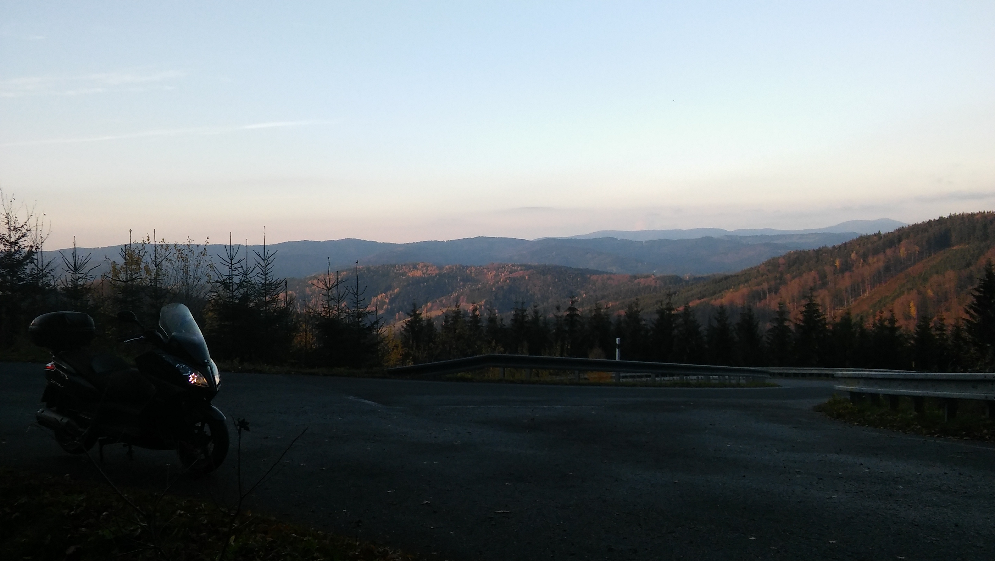 15°C a slnečné počasie nenechalo na seba dlho čakať . Nemohlo to dopadnúť inak len šup do brnenia a hop do sedla :twisted: Vybral som sa na Nedašov , suchá ale studená cesta mi napovedala ,že čas labužníckych náklonov je preč a treba byť viac v strehu :shock: Nuž tak neostalo nič iné ako "kochačka" jesennou alpinkou v okolí krásneho Moravského priesmyku. :roll: