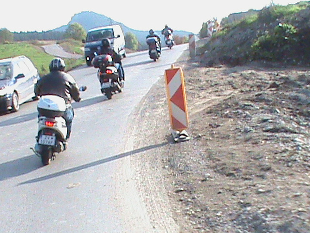 Predo mnou boli dva silné stroje, ktoré išli ale rýchlosťou, ktorá brzdila moje Piaggio. Preto som ich predbehol. Na svetelnej križovatke na červenú pri mne pristala jedna z nich. Znelo to ako by pri mne zaparkoval minimálne obrnený voz. Po odklopení priezoru na prilbe dotyčného vodiča silného stroja sa ozvala výčitka „Ako to že si ma predbehol a ešte k tomu na skútri ?“ Padla zelená, pri ďalšej križovatke opäť na červenej padlo pozvanie „Poď s nami do motorkárskej krčmy.“ Tak som išiel. Moje Piaggio tam bol jediný skúter. Vypil som kávu a šiel radšej ďalej rešpektujúc vyššie kubatúry.