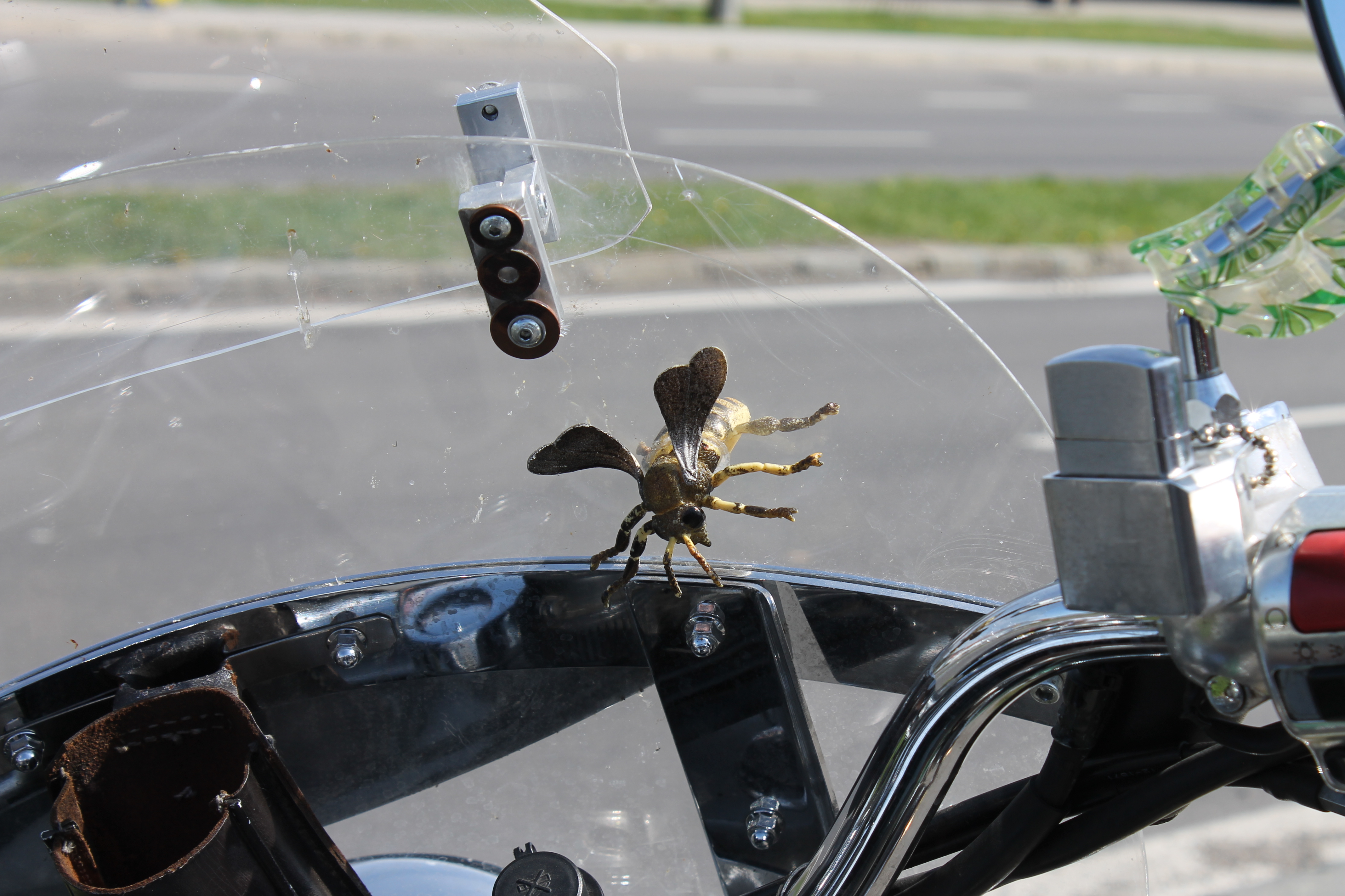Nedá mi nepodeliť sa s ostatnými o zaujímavú informáciu zo 4. Žiarskej jazdy. Našiel som tam jednu muchu potvoru, ktorá prerazila jednému z motorkárov štít a ostala v ňom zakliesnená. Pozrite foto. :mrgreen: