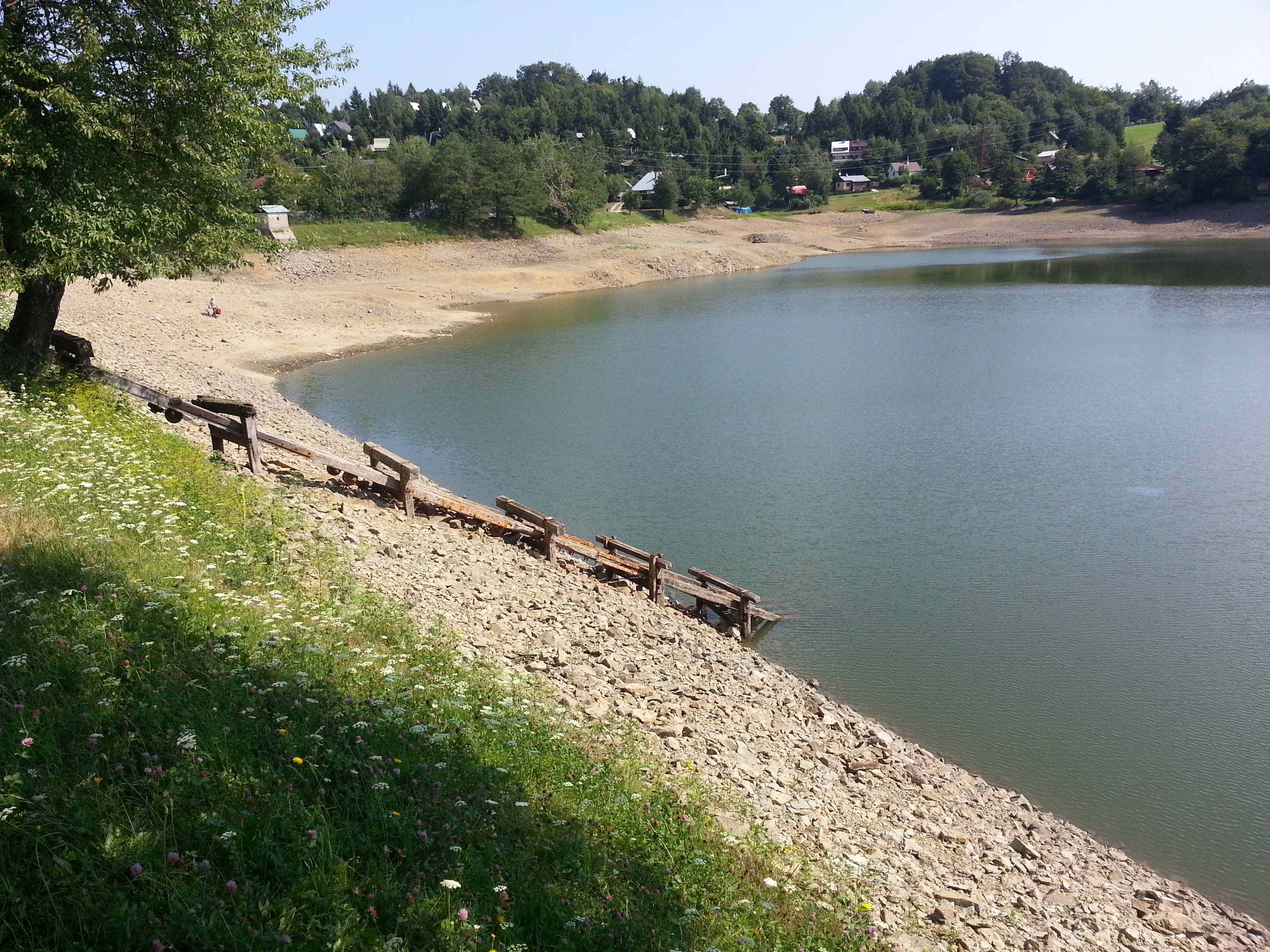 Čerstvé foto z Rychnavskeho jazera, ktoré je z nejakých príčin skoro vypustené.