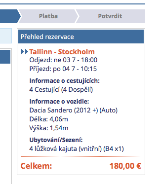 Nocny trajekt z Turku do Stockholmu TALLINK ,alebo VIKING LINE napr.na 15.07.2016 o 20,15h. - 06,10h. t.j.cca 10hodin plavby,cena za 1osobu 137,-eur v kajute pre 4osoby, VIKING LINE 20,55hod.-06,30hod. 153,-eur na osobu v kajute pre dve osoby. Cena je na osobu! Cena na palube bez kajuty za denny trajekt je za 34,-Eur cas plavby 8,15hod.- 18,15hod. zdroj : aferry.com