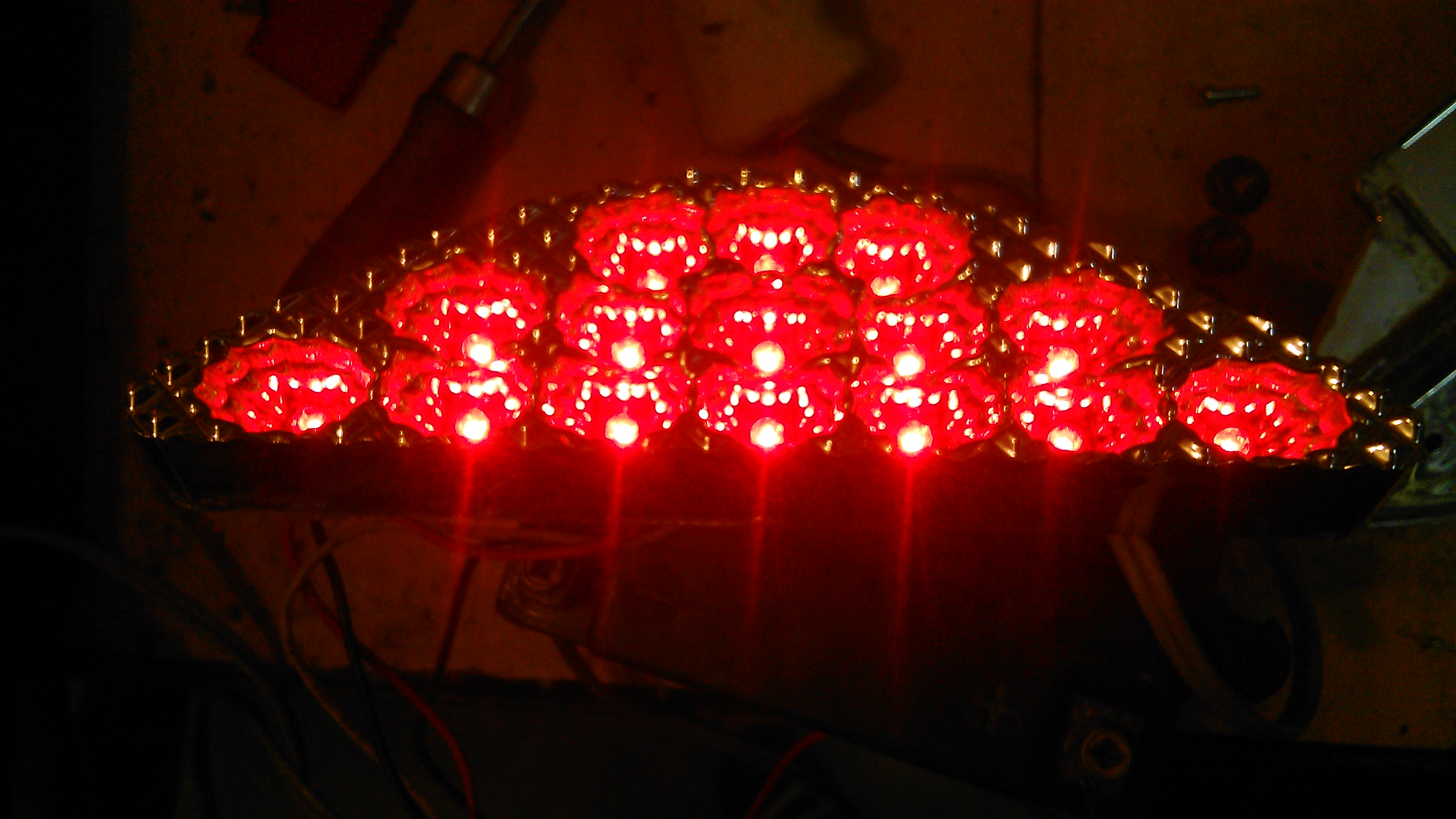 Tie tri čo nesvietia sú najskorej zapojené spolu do série, asi je niektorá LEDka odfajčená alebo je dakde studený spoj. Prípadne prdol predradný rezistor. Ak sa to nedá rozobrať (všetko sa dá rozobrať...Ak sa chce :pardon: ) tak to treba rozobrať a pozrieť možno bude stačiť preletovať. Ak nie tak nič jazdiť bez toho a tváriť sa že to má svietiť ako zadná hmlovka . :D