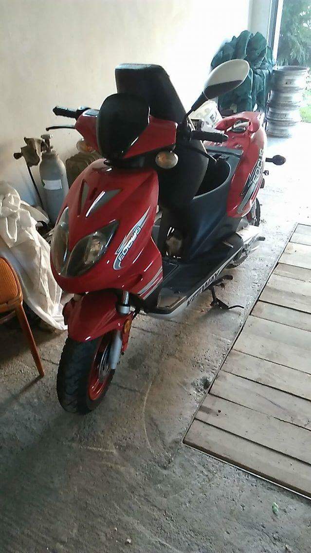 Kupil som .... je to 50-ka 2-takt celkom pekna , pohodlnejsia ako keeway, je viacmenej ciernej farby , priniesol som si ju do Ke po vlastnej osi z Novych Zamkov ... Najazdenych ma 16000km a je v nej novy valec ...je to rok 2007.... Ma nejake chybicky krasi no casom sa vyriesia ... Hmm co to je?