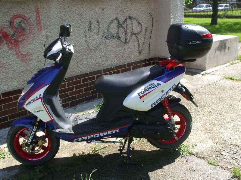 Rozhodol som sa s Vami podeliť o moj skutrik je to CPI Formula 50 R.. rok výroby to je 2007..ale bol kupený nový z predajne v 8/2008 kde som hned kupil aj kufor Shad... po cca 3500km som nahodil malý tuning:výfuk S6 pro replika, variator malossi multivar, kevlarový remen, červené spojkové pružinky naraku, 6g valčeky do multivaru...