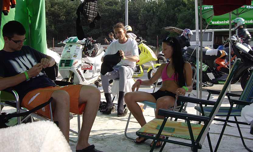 Sutaz krasy bola trochu nefer a madari to hodnotili nejak cudesne, moj skuter postupil do uzsieho finale 10ks z asi 30tich, len zrovna ked hodnotila komisia som musel prezuvat mokre gumy a robit "dazdove" upravy takze ma zrejme zo sutaze vyskrtli... nevadi...