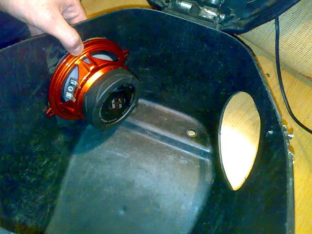 ..dieru v kufri som kus opracoval, nech to nejako vyzera.. a primeral som dierky na repro, vyvrtal no tie tri pivá pred tým spravili svoje, a tak som vrtal znovu tento krat uz uspesne ..