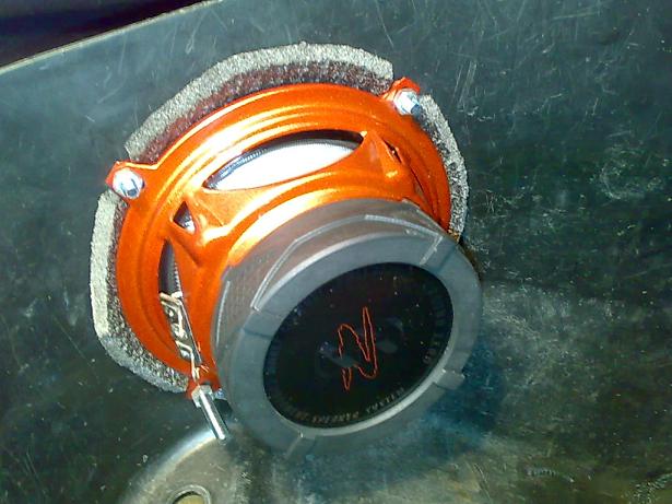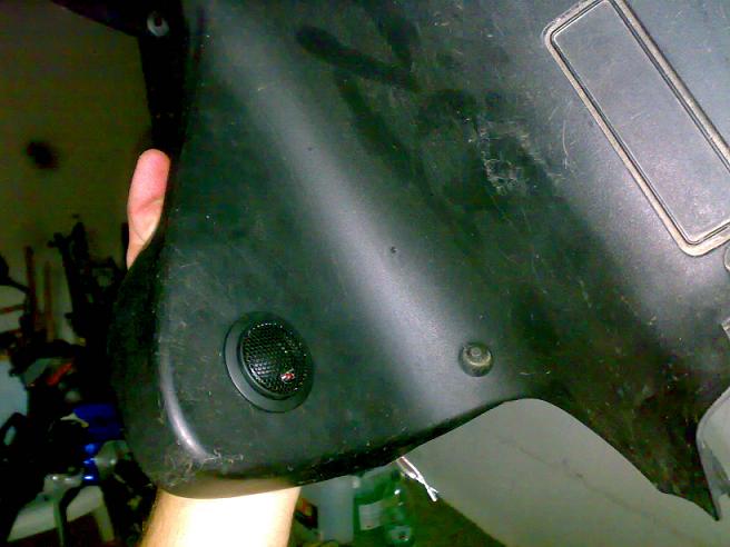 ..nakolko som zistil ze kufor nie je az tak rovny po stranach a ja som nechcel mat medzery medzi plastom a reprom pre co najlepsi zvuk tak som to vytesnil ehm.. takou čiernou vecou :D (dont question)