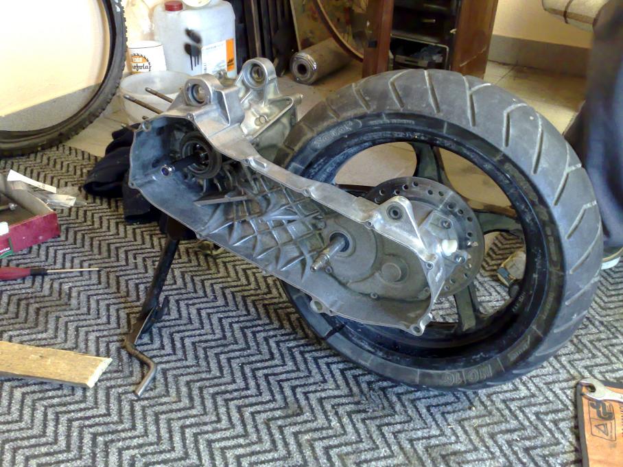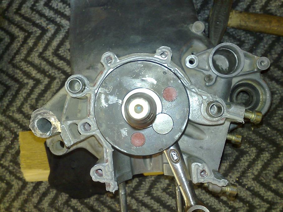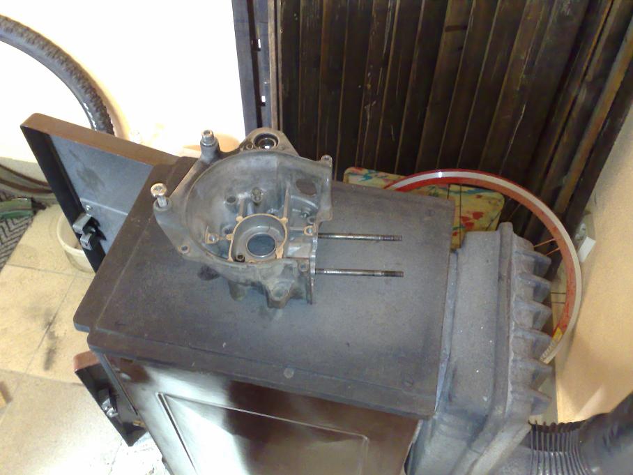 ako prvé, veľké ozubené koliečko, nad neho menšie, ktoré sa opiera o štartér , na to čierna vec ktorú držia dva šroubiky a vlastne ona sama drží oba ozub.koliečka, alebo aspoň sa tak tvári