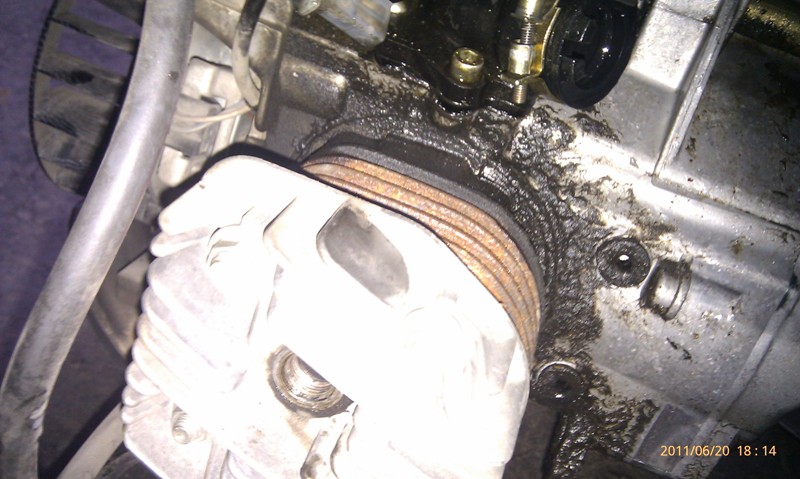 .. no v prvom rade to chce handricku , kefocku , technicky benzin , popripade z Lidla Engine cleaner a ides na to .. vsetko kvalitne precisti a vsimaj si detaily , musis prist na to zkade to razi von .. ja to typujem ze bud guferko na kluke tlaci sa von spod zapalka a kape dole, ale podla foto skôr tesnenie pod hlavou, neviem ake tam mas tesnenie ale na mojej mašine je papierove, pred par dnami som kupil v mototechne , alebo autotechne univerzalne tesnenie cca 0,5x0,5 metra, je to riadne velke a ak mas stare napriklad, len prilozis a obkreslis, vystrihnes spravis si vlastne nove .. alebo druha moznost /drahsia/ kontaktovat napriklad taky moped-slovakia kde mi ochotne poradili, dokonca odfotili tesnenie s pravitkom pre porovnanie s mojim pôvodnym, bral som od nich uz dve sady .. inak spokojnost