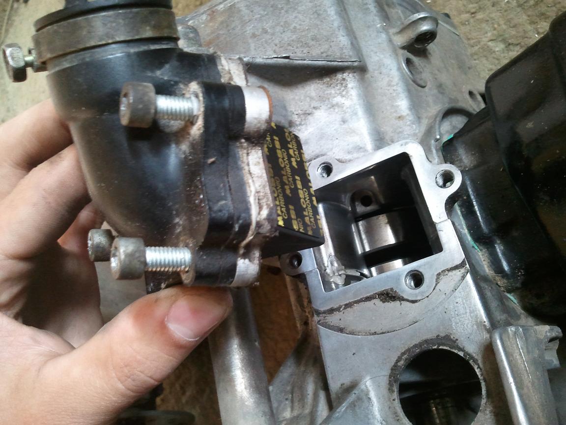 otazka znie , .. ci to dat dole, odobrat material z valca , .. toto je kanalik priamo co ide hned od klapiek nasavanie , cize ked ja som teraz karter upravoval , spriechodnoval som cestu zmesy ktora pudi do valca, toto jej presne stalo v ceste , .. tento kus zeleza ktory ide z valca , ..