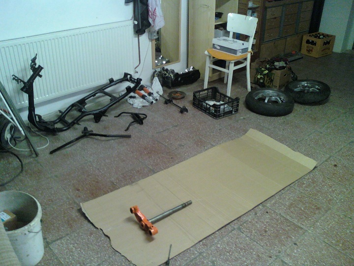 Jelikož byl problém s chlazením, tak sem koupil chladič z X8 namontoval místo originálního.. a beztak sem neuchladil.. dnes jsem si teda dovezl domů Ventilátor (když ho zapnu to je hukot.. :D :D ) ve středu jedu na STK (na vozíku) tak ho namontuju až skůtr dovezu domů.