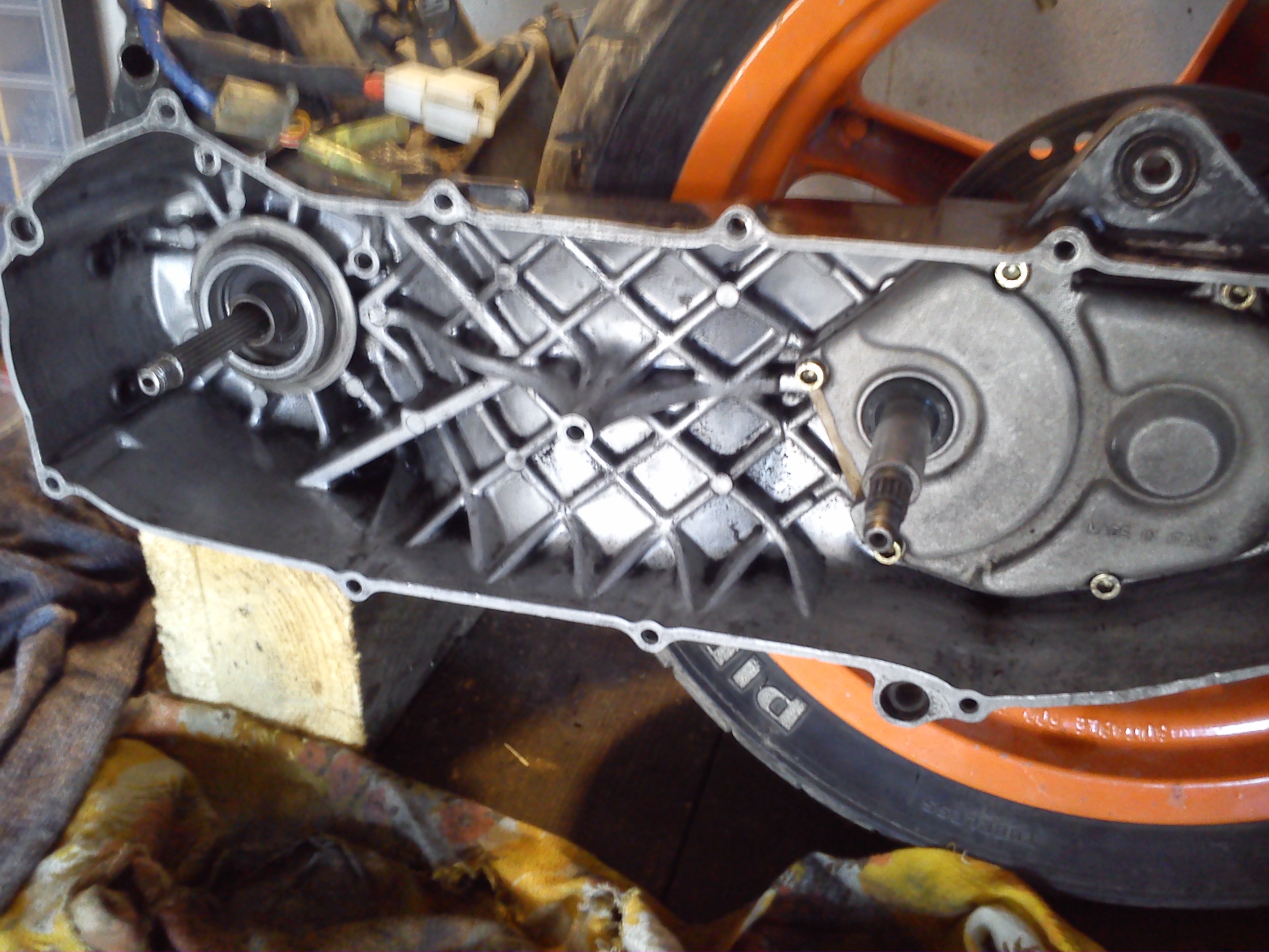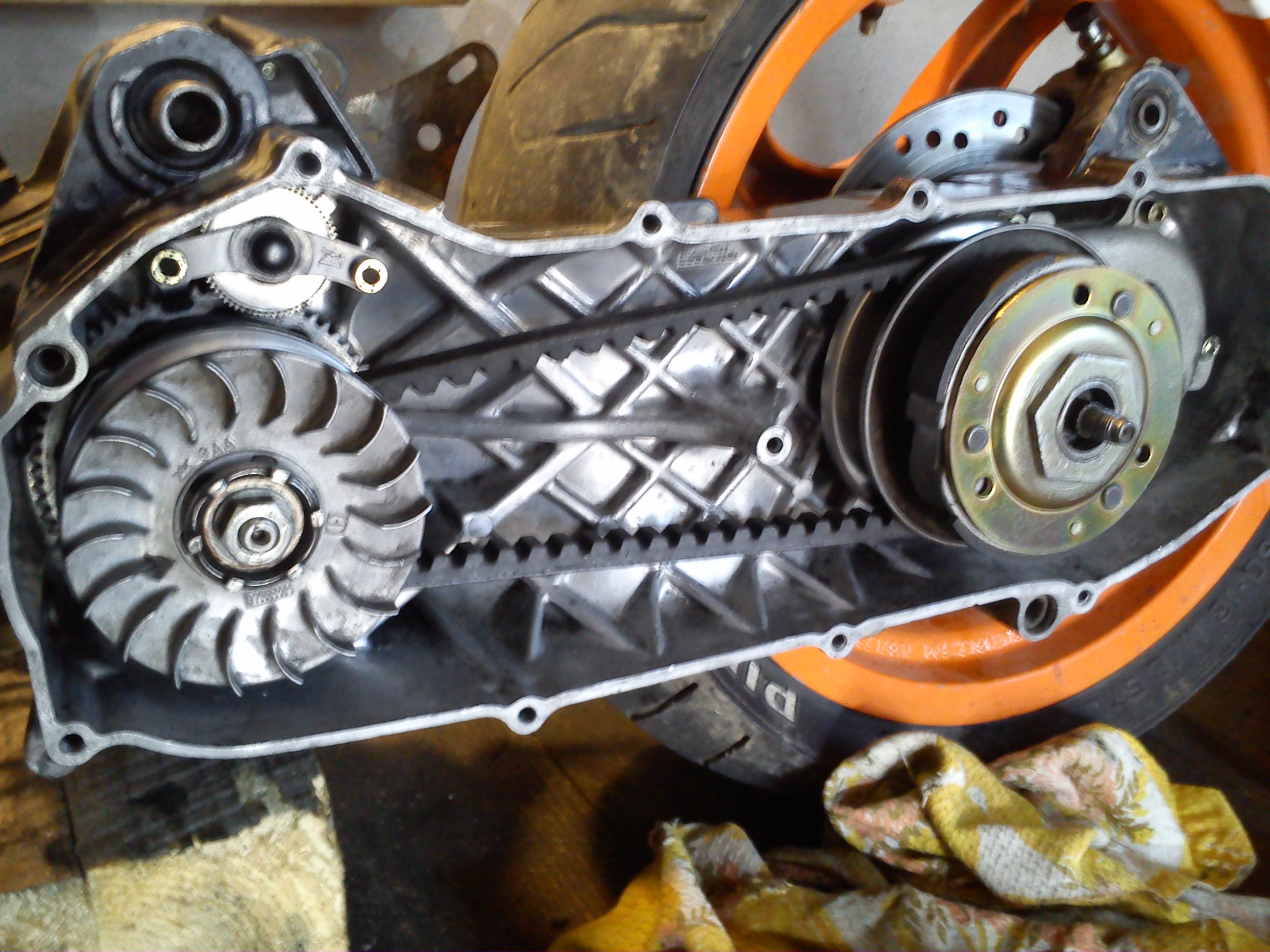 Tak dnes motor na ponku...rozobratý, pre tesnený, a menšia kontrola..tak isto vyčistené oblasti variatora po roztrhanom remeni...:)