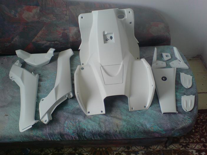 takze plasty su uz uplne pripravene na farbu len musim cakat pokedy bude mat lakirnik cas skusil by som to aj sam ale neako sa toho bojim skuter este nieje doma clovek ktory mi to steluje (karburator. tak objednal trisky ktore mu chodia uz asi dva tyzdne ked nie try tak stale trpezlivo cakam ale neviem ze este ako dlho inak skuter po stelovani bude uz hotovy nastriekaju sa plasty a jazdin :Yahoo!: