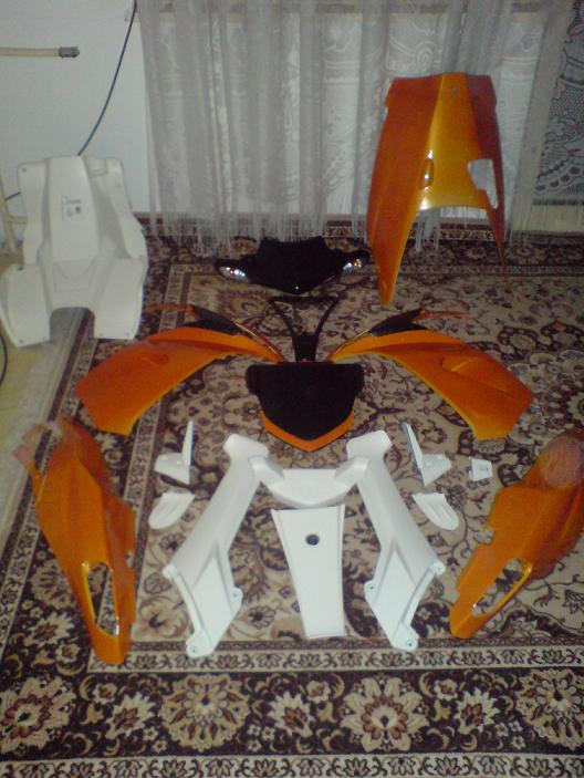 takze skuter sa steluje este treba do karburatora trisky dneska mam uz konecne doma vysnivanu farbu je to farba co sa dava na lamborginy auta orange lakirnik mi povedal ze sa to dost tazko strieka a vysla ma dost draho hehe ale budem stastny ked uz bude streknuty