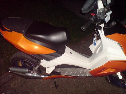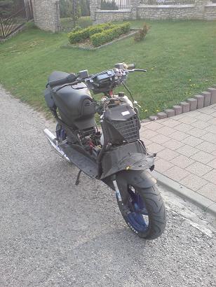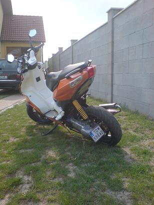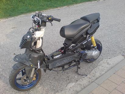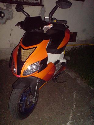 třakze skuter dokonceny na 90% vsetko bolo poskladane na rychlo tak provizorne zajtra sa vsetko doladi treba nastriekat este jeden malicky plast , zapojit neony , zapojit muziku , vylestit variator ale to az nevem ekdy hehe teraz sa chcem vozit a este mam jeden problem nechce mi svietit lavy blinker v predu asi vypalena ziarovka v zadu svieti tak neviem