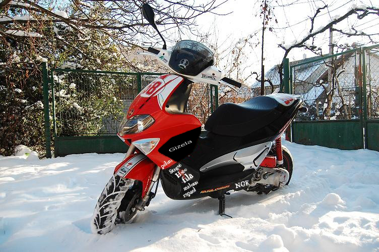 a troska precistil ... sezonu som zjavne ukoncil minuly tyzden uz nema vyznam jazdit v takej zime..teraz je na rade MHD a tepla pivnica kde budem vylepsovat celu zimu skutrik caka ma total odplastovanie precistit vsetko chcel by som motor precistit z vonka...kupit zadnu gumu a remen a potom by nasledoval aky taky tuning ...