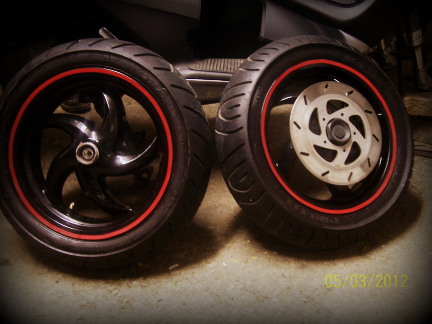 chlapci, tak kolesá som dal nakoniec nastriekať na čierno lesklú, prilepil som reflexné pásiky