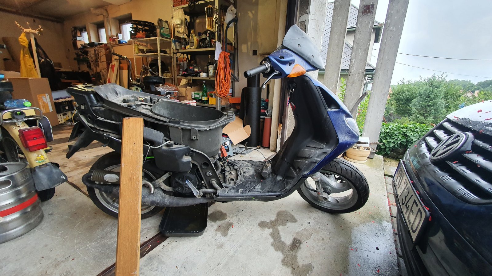 Tak priatelia. Kupil som hracku. A to piaggio nrg mc3 lc, ktore bolo v stave: ram + plasty a dve krabice zeleza. V motore su nove loziska a gufera na kluke a loziska a gufera na prevodoch.