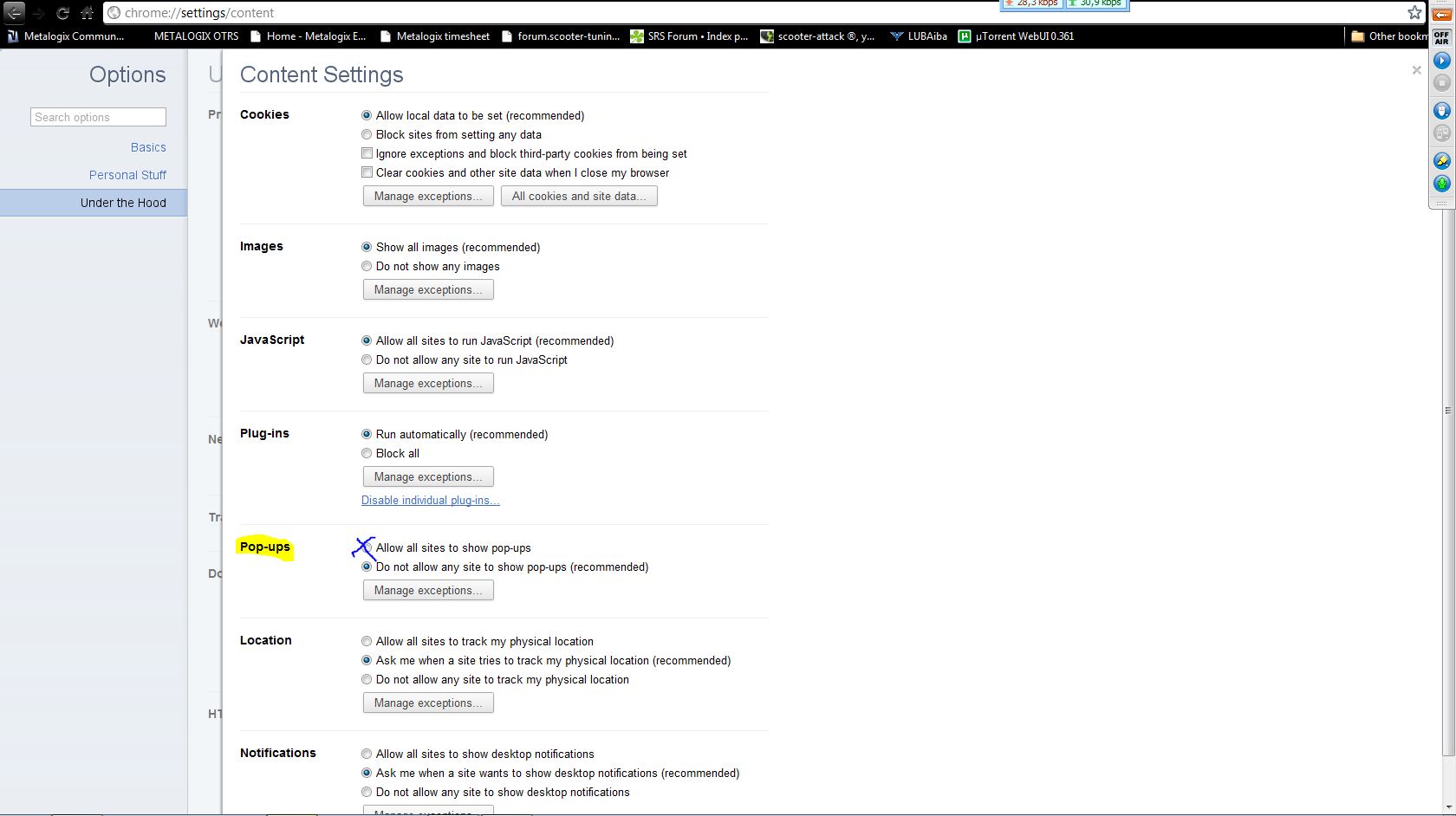 Ja sice to okno nevidim, (asi to bude tym, ze to blokovanie mam zapnute) ale v prilohe mas, kde sa to meni.. Snad nevadi, ze to je v anglictine, ale je to v sekcii pod kapotou, ked ides do nastaveni..