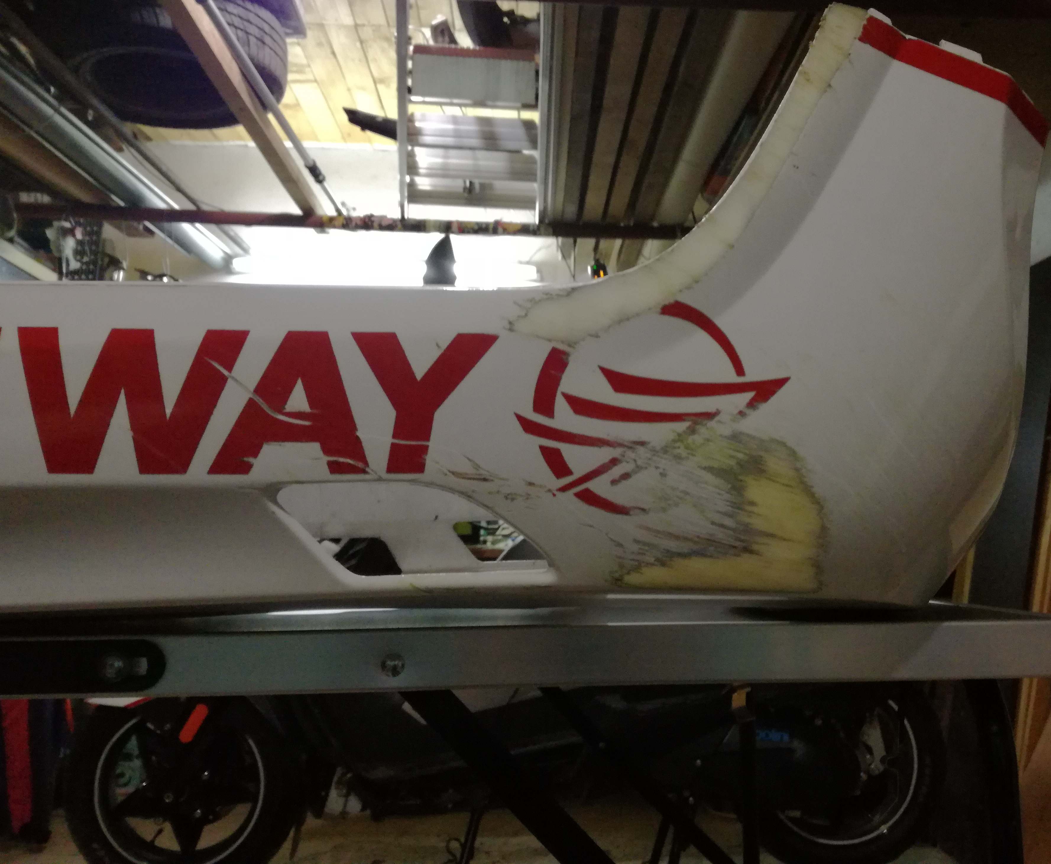 Plasty sú pekne zodraté ako sa šuchal po pravej strane po asfalte do priekopu. Skúter bol po havárii pojazdný, tak som na ňom po zdokumentovaní nehody aj došiel domou skoro 30km. Bez akých koľvek problémov naštartoval, ako sme ho dostali von z priekopy na kolesa. No čo už, až mi stav hrudníka dovolí, dám sa do opravy a možno ešte v tomto roku sa preveziem. Plasty sa vymenia, zohnutá „stupačka“ sa vyrovná, a riadidla sa budú musieť vymeniť tiež. Okrem plastu nášľapu, ktorý bol roztrhnutý, ostatné plasty ani len nepopraskali, čo svedčí tomu, že KEEWAY SilverBlade aj keď je Čínske výroby, je veľmi kvalitne vyrobený a nikde sa nešetrilo. Uvidím, ako rýchlo mi budú dodané náhradné diely, zatiaľ cena podľa katalógu by nemala presiahnuť 500€.