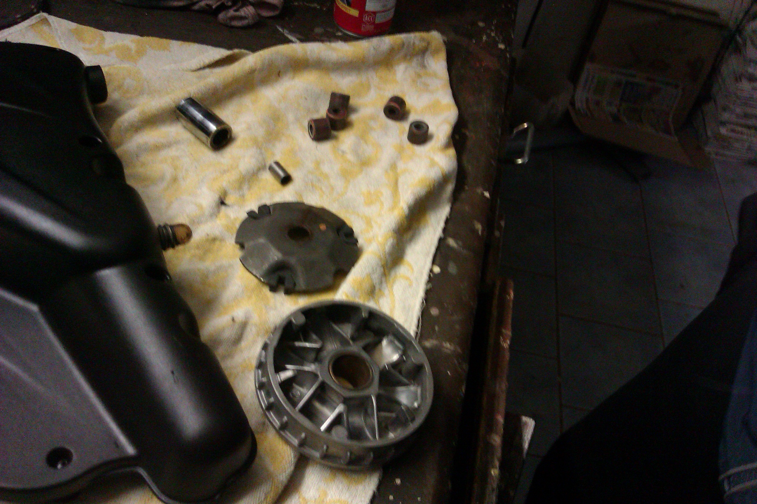 Potom sme sa pustili do oškretých kuskov ako vidite na fotkach a nakoniec sme sa kukly na variator je to seria ale ma nove a lahšie valčeky potom je tam novy remen.