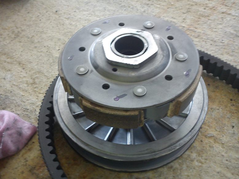 a ano, to je ten mechanizmus, co za Vás "řadí" Vývoj variátorů se zvyšující se popularitou v podstatě dosáhl vrcholu (možná je to i proto jak jednoduchý to je), ale tady je právě onen slavný zásadní problém a to jen u Burgmanů 400. Variátory mají totiž u Burgošů 400 od roku výroby 2007 zásadní výrobní nedokonalost, kterou absolutně nepochopitelně nikdo oficiálně nevyřešil ani za 4 roky, co se o problémů ví. Tím problémem je odstředivá spojka variátoru, a to konkrétně materiál obložení na paknách spojky. Zejména u prvních ročníků modelu K7 (2006/2007) se často setkáte s pískající spojkou, která při záběru velmi často zatřese celým skútrem. Je to způsobeno napalováním onoho tepelně nevhodně zvoleného materiálu. Celý problém je řešitelný celkem jednoduše, a to přelepením obložení spojky nějakým tepelně odolným materiálem (je hromada firem, které to udělají s cenou cca 500-1000Kč). U pozdějších ročníků 2008+ se vylepšilo chlazení a odvětrávání variátorů a situace se mírně zlepšila, ale nevyřešila. Proto lze čist, že i u nově prodaných kusů jsou problémy se spojkou po najetí pár tisíc km. Ve značkovém servisu se obvykle celý problém řeší češtěním prostoru variátoru od prachu a dalších nečistot od řemene, aby se zákazník na chvilku umlčel. Problém to vyřeší, ale za 1000-2000km se vše "ozve" znova.