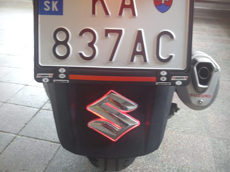 Znak SUZUKI založení,funguje ale nevedel som sa rozhodnúť či to prepojit na koncové svetlá alebo na brzdu ale vyhrala brzda