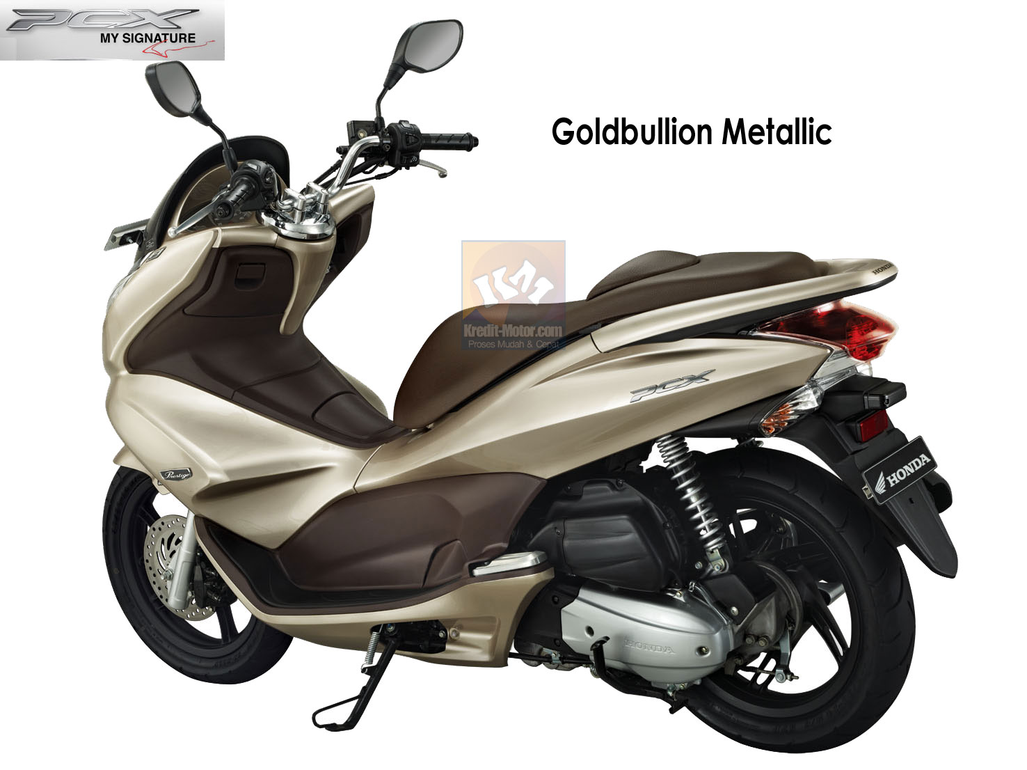 Prestriekam ho plastidipom do tejto kombinácie vyblednutého zlatého plastidipu a v zime dám mierne upraviť a prešiť sedadlo hnedou kožou u čalúnika. Postujem ilustrovanú fotografiu PCX v rovnakej kombinácii zlatej/hnedej. Pred rokom keď som uvažoval ešte o PCX má táto kombinácia tak uchvátila a uložil som si ju do priečinka ako upgrade môjho PCX po kúpe.