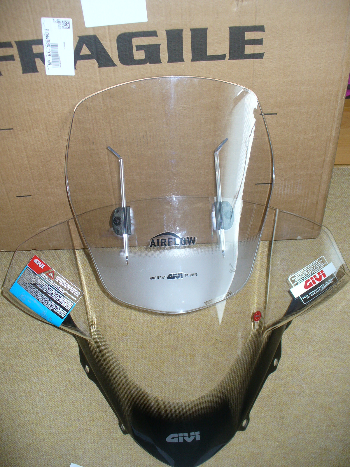 Rozmyslal som co dalej, ci kupit to obrovske plexi D5604ST givi, alebo ist do kompromisu GIVI AF5604 airflow. Vyhral airflow...