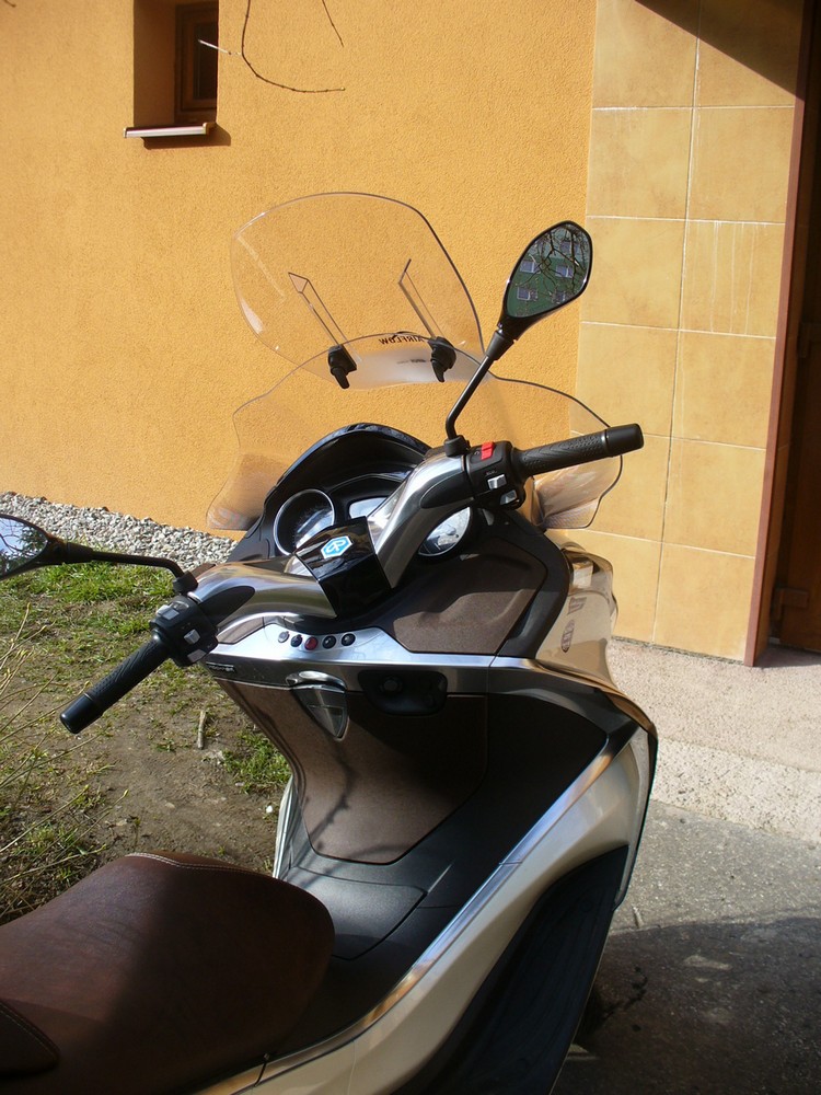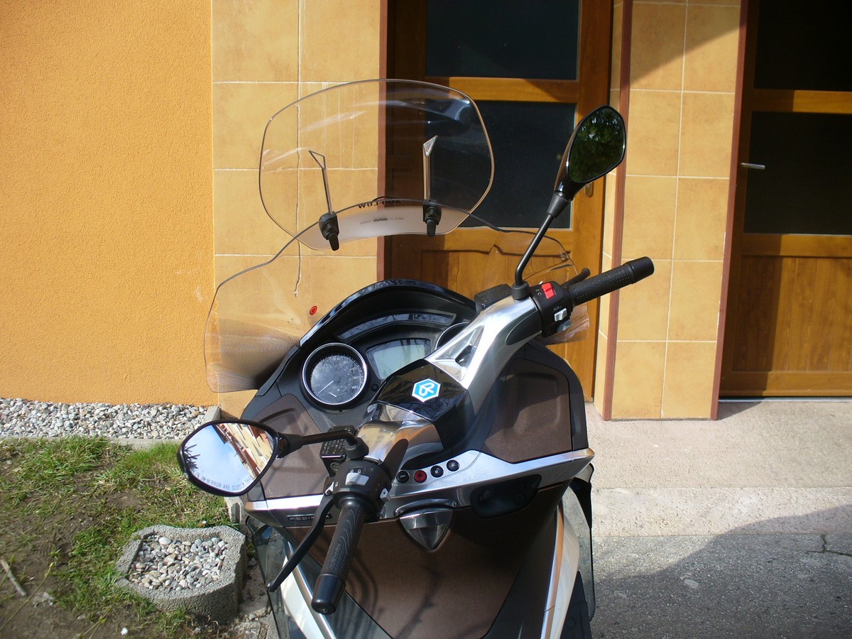 Moj skuter Piaggio X10 350 Executive sa zatial nepredal ( http://motocykle.bazos.sk/inzerat/57409 ... cutive.php )a ked by som ho mal dat pod cenu, tak to si ho radsej necham. Takze rozmyslam nad vylepsenim ohladom plexi stitu. Meriam 187 cm a moj posed na skutri je vacsinnou taky prikrceny, to aby som sa pri vyssich rychlostiach viac schoval za originalny plexi stit. Ten original je taky univerzal, ze ani neurazi, ani nepotesi... takze vymyslam a rozmyslam nad vymenou.