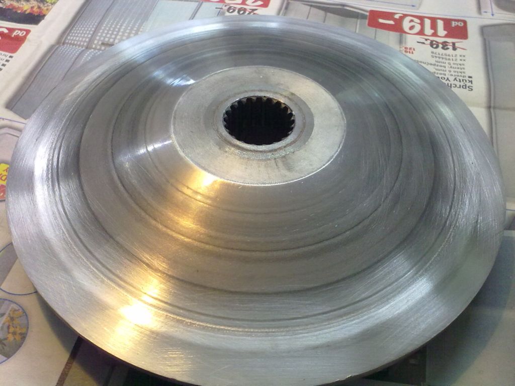 najlacnejšie riešenie za cenu cca 120E za obe.Lebo len najlacnejšie Poliny vario stojí cca 150E a Malossi ešte viac cca 180E a to je furt len vario bez vonkajšej poloremenice . A si myslím tiež, že ak by som to dal stočiť, tak moc matrošu navyše na uberanie tam nieje. A okrem toho by som asi nemal odvahu to nechať spraviť u mňa v robote za ďakujem alebo na revanš, alebo keď hneď aj za dajakú flašku,ako občas býva zvykom ak potrebujem len dajakú drobnosť že pár minutová robota. A hlavne preto, že viem v akom stave je ten sústruh...A ak by som to dal spraviť ozaj super fachmanovi cez jedného kolegu , tak ten si isto vypýta minimálne 20-30E a to je už nerentabilné ak nová stojí cca 50E.Takže tak .Tento rok dojazdím na tom vybehanom a cez zimu to prehodím. Aj tak sa chystám ešte meniť olej v zadnom prevode.