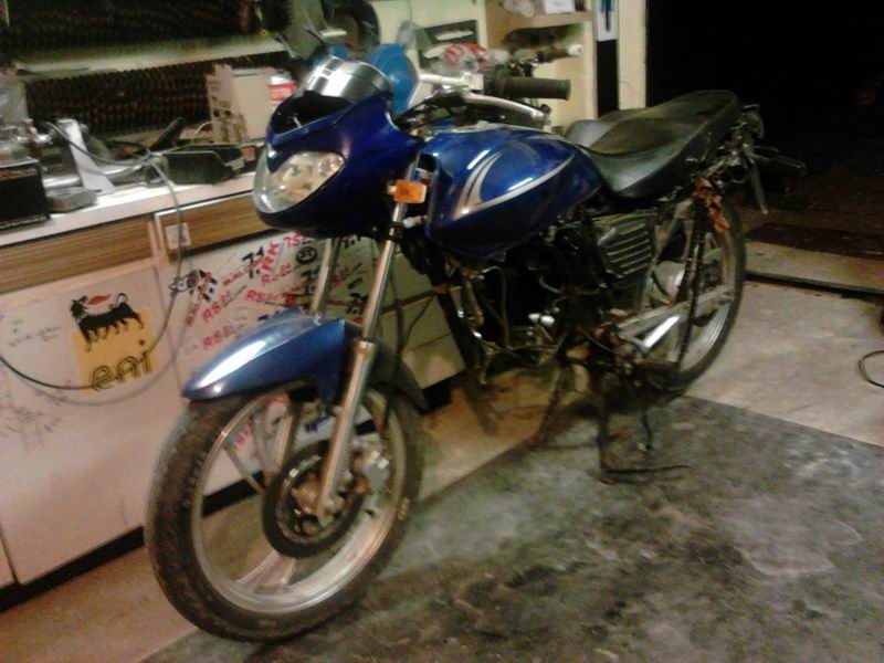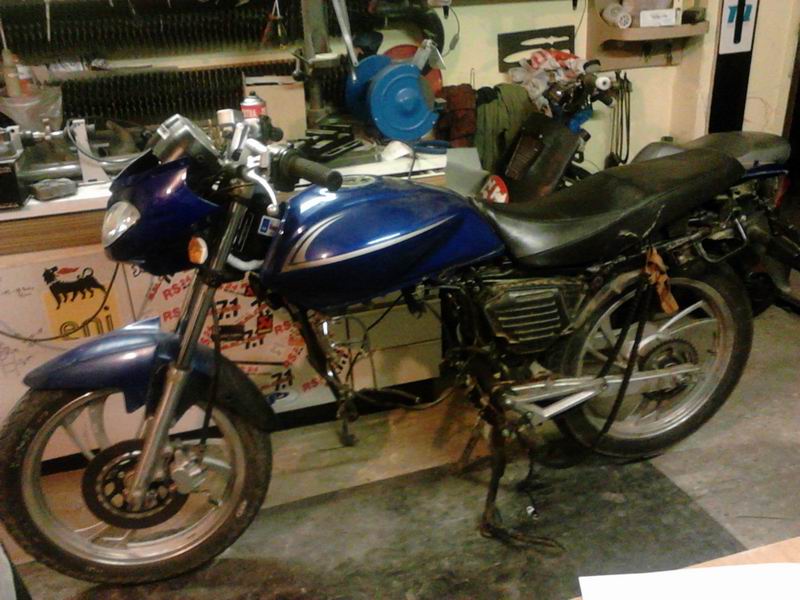 honda CMX 250 Rebel US verzia, ktora posluzi ako darca organov...motor s krasnou patinou od slaneho ovzdusia...na yukinu pride asi komplet predok s 18kou vypletanym kolesom a kusok lepsou vidlicou, pekne predne svetlo so siltom (akurat ma maly cestny lisaj...takze asi ho vypieskujem a matna cierna...) a skratene laufy...este som sa nerozhodol ktore...ci cigarkove z rebela alebo trumpety z yukiny...cele by to malo byt v style wrenchmonkees, co najmenej laku a co najmenej suciastok...(otazka znie ako zachovam modru farbu co je v papieroch