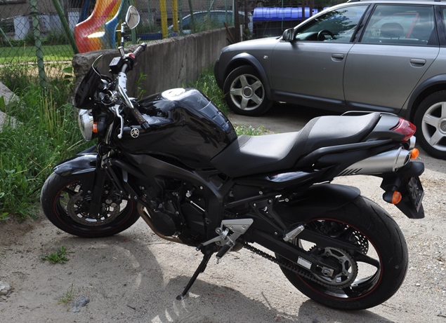 Ohladom novej moto - myslim, ze som kupil spravne. Vela ludi mi hovorilo, aby som na vacsiu prechadzal postupne a je dobre, ze som ich neposluchol, cim som si usetril kopu nervov a urcite aj penazi. Motorka je krasne ovladatalna, jednoducho som sadol a isiel. Jediny problem mam s mojim vzrastom, co sa odzrkadluje na bolesti istych intimnych partii a pomerne tazkej manipulacii na mieste, hlavne cuvani. Najvacsi rozdiel oproti skutru vidim nie je vykone, ale v pruzeni - ked som po par km na FZ6 presadol spat na Roxa, skoro som sa zabil, kedze som siel 60kmh aj cez dost rozbite useky, co mi na FZ6 nerobilo problem. Spotreba mi vychadza okolo 5L, co je myslim velmi slusne a to som to obcas vytacal/niesol spolujazdca. Uz len kvoli spotrebe a pruzeni, si myslim, ze do mesta sa jedna o lepsieho spolocnika, samozrejme ked neratame 125 a vyssie 4t skutre. Z negativ spomeniem napr. absenciu prednej polokapotaze, co je dost citit na dialnici - 120 je maximalna unosna rychlost - zial aj kvoli mojej Marushin prilbe, ktora sa dost rozvibruje. S fotrovou integralou som az taky problem nemal. Dalej sa jedna napr. o prevodovku, pri ekonomickej jazde na 6 pri 100kmh pri predbiehani treba podradit na 3. Vykon v nizkych otackach je slusny, na vozenie po meste uplne vyhovuje - motorka tu zere malo a je tichucka. Okolo 5500 trosku zavibruje, okolo 7000 je mensia vykonova diera a nad 8000 je to diabol. Brzdy som velmi dobre, stale si zvykam na brzdenie motorom. Gumy dal talian akesi sportove Metzeler, vcera mi v dazdi veru nebolo vsetko jedno. Mozem este spomenut prepinak smeroviek, ktory je umiestneny vyssie ako na roxovi a v tej polohe je truba, co sa mi uz par krat vypomstilo na krizovatkach, zvyk je zvyk. Niekomu moze vadit dost citelne radenie z N do 1 a este by som rad podakoval typkovi, co vymyslel poistku na bocnom stojane - uz mi asi par krat zachranil zivot :).