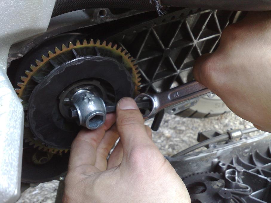 Tu stredovu osku som musel pouzit zo stareho, bola par desatin dlhsia+klasicky podlozka,takisto zo stareho isla aj podlozka za variator.