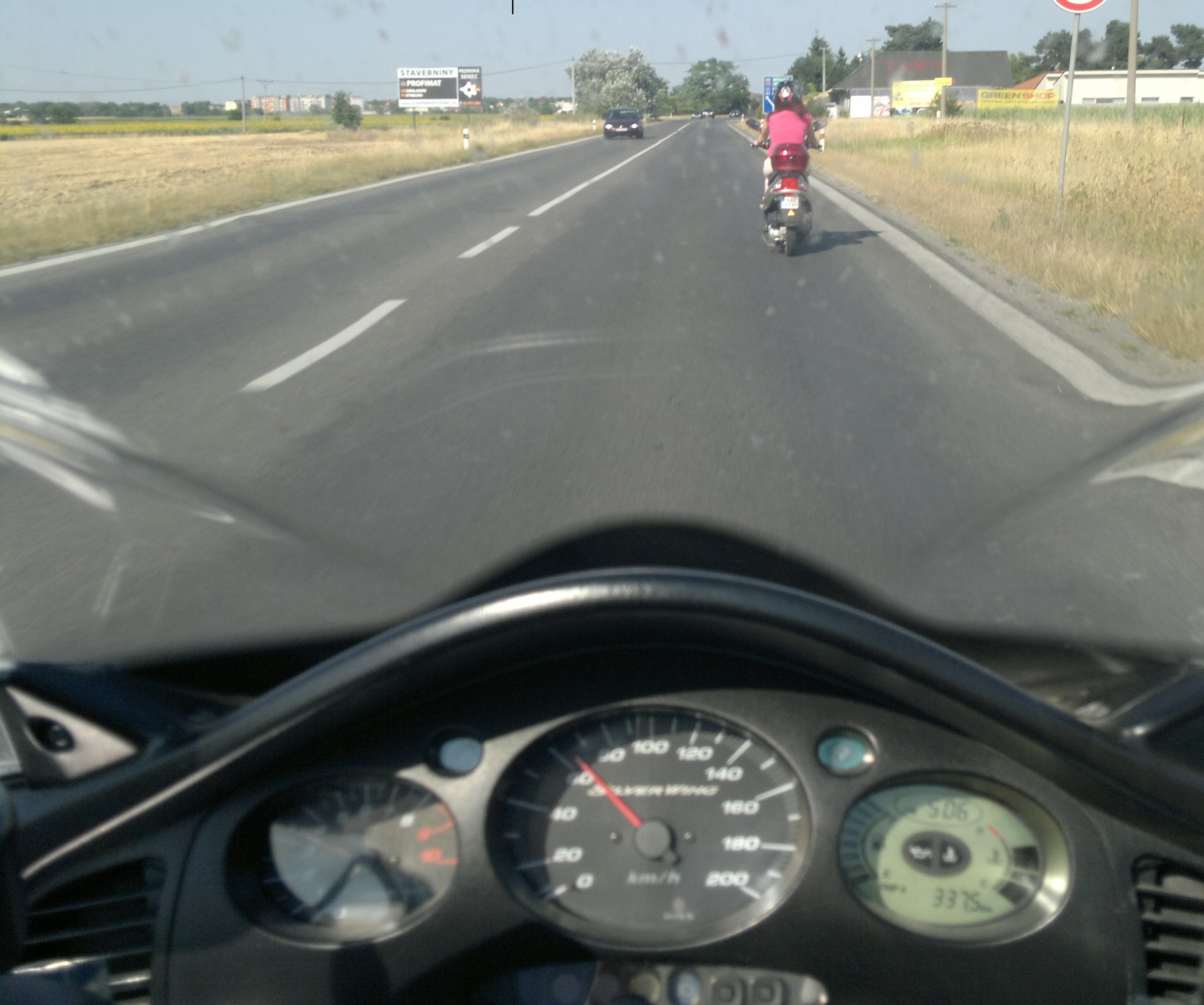 Lebo čopristu som si všimol až na poslednú chvíľu že zdraví, nexus či aprilia 300 čo šla predo mnou zase neviem či ma jazdec registroval za sebou, chcel som bliknúť alebo zatrúbiť ale už som medzitým zišiel na diaľnicu :).