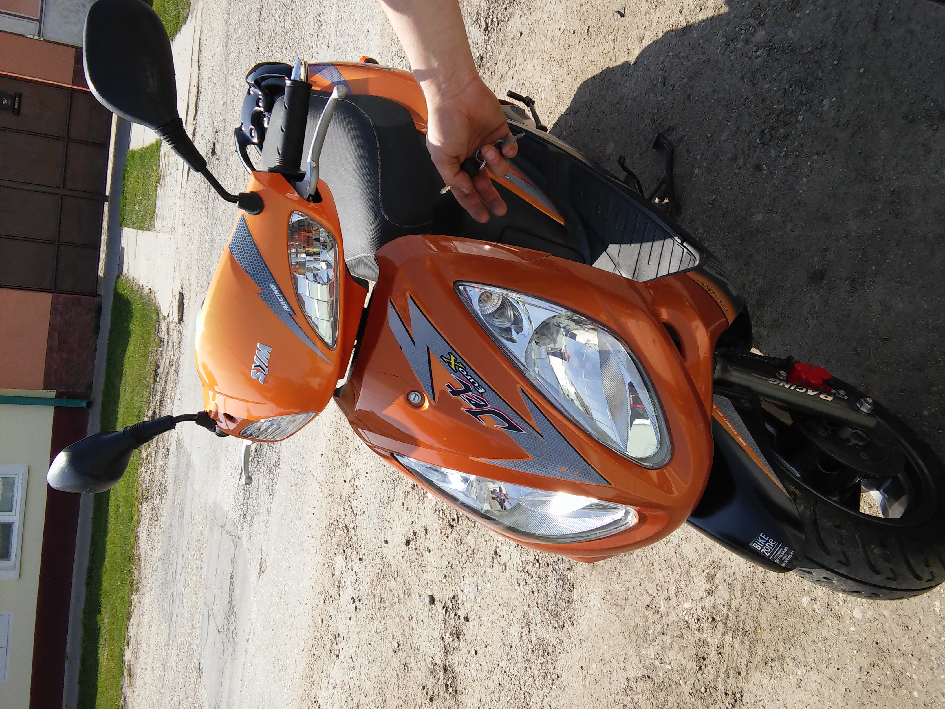 Pri kupe som vedel ze nekupujem novu masinku... Plasty trosku doskrabane... Predna kapotaz prasknuta... Vyfuk trosku hrdzavy... Ale motor a zvuk celkom poriadku... Masinka este nebola ani odblokovana... Majitel tvrdil ze co je na tacho tak to je realne a ze neni odtocene....(5000 km)... Tak po kupe a odjazdu na nom domov (34 km) som zistil ze naozaj vsetko je este asi origo od vyroby... Tu myslim nato ze este asi nic nebolo vylepsene alebo zmenene... Skuter ani za nic nesiel nad 50km za hodinu aj to trosku slabsie vedel dosiahnut... Tak po strasnej nude na ceste konecne som sa dostal domov.