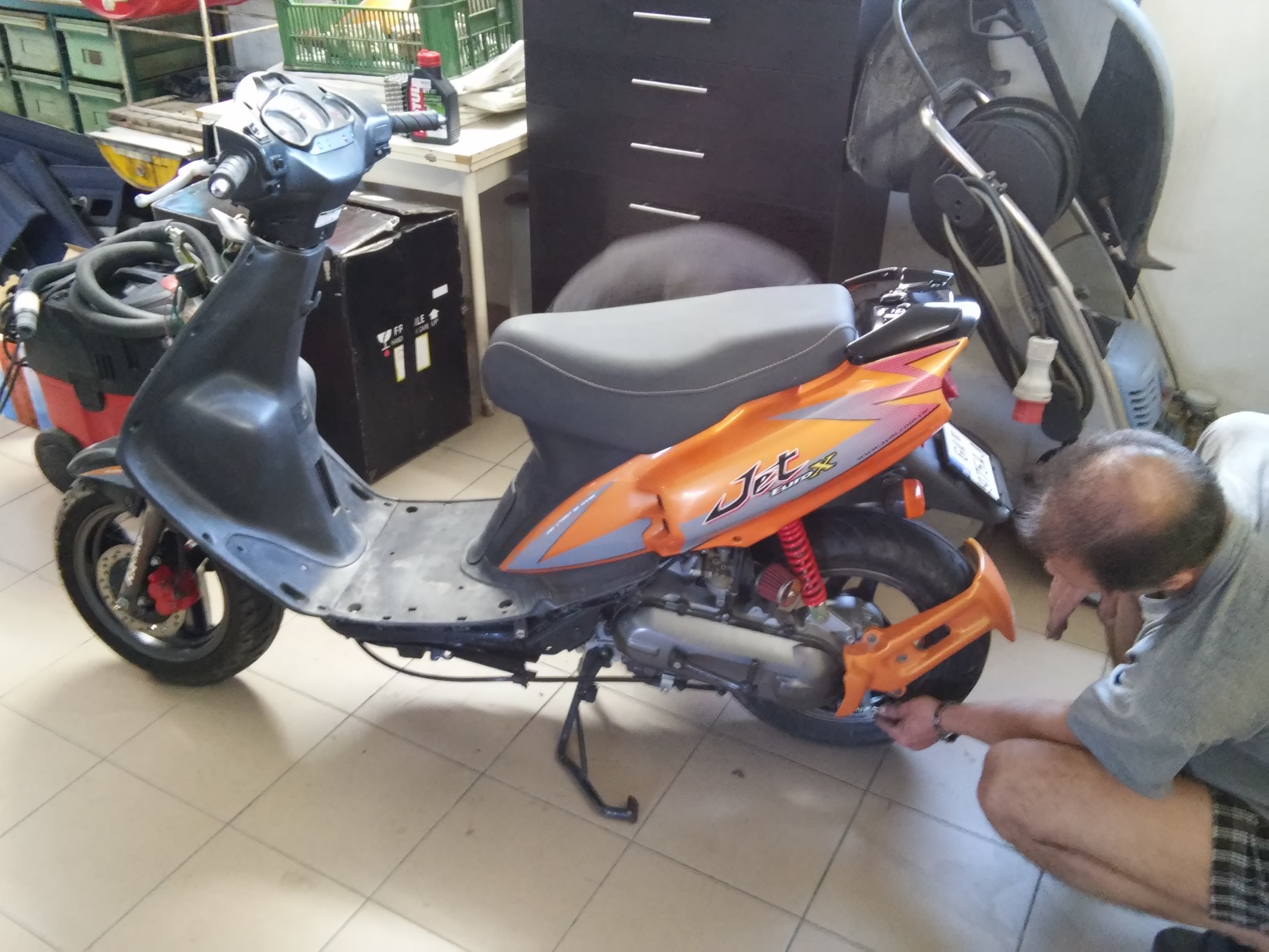 Skuter komplet na kusy... Prezrel co treba menit, opravyt, (vyhodit), dorobit atd.