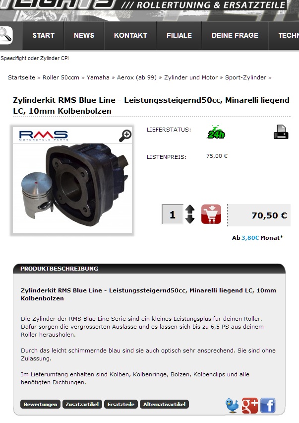 RMS Blue 50, valce su často zaraďované a označované v kategorii SPORT pretože majú lepšie parametre ako 50cc valce vyrobcov 101 octane a spol. Nieje to síce čistokrvný šport, no čo nemôže tomu to valcu nikto zobrať je fakt že ma najlepší pomer cena/výkon v 50cc nahradách a dá sa vymáčknuť na 6,5k. Mňa ten valec predvedčil a pri každom zadrení a ostaní v 50ccm by som ho pre jeho cenu stale volil. :good: ...tak isto stačí si prelustrovať nemecké fora a ešte som nenašiel dake negativum pre tento lacny valec.
