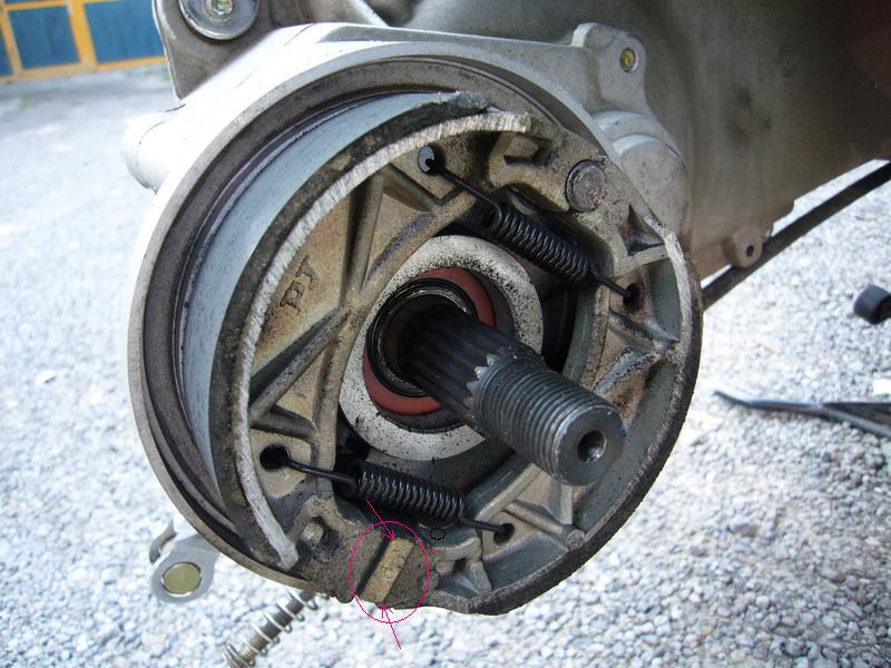 Keď vidím jak šlendriánsky je spravený ten brzdový klúč čo rozťahuje pakne tak sa ani nedivím že tie čínske scootre majú všetky problém zo slabým účinklom zadnej brzdy.Tie dve ostré hrany čo som označil by mali byť pekne dogulata obrobené aby bola čo najväčšia plocha medzi pakňou a klúčom .Lebo ak je tam takáto ostrá hrana tak sa to môže do toho pomerne mäkkého AL odliatku akurát tak dobre kúsať a zadierať ...a po čase si to vyderie ostrú hranu cez ktorú sa to viac nedostane a neroztvorí ich dostatočne a potom to slabo brzdí.