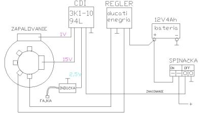 2, takisto prichádza zo zapaľovania napájanie do CDI 15V,