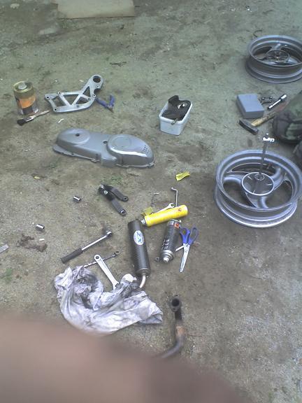 Jinak k motoru je tam:MALOSSI SPORT 70ccm,LEOVINCE ZX,MALOSSI MULTIVAR,MALOSSI MHR řemen,21DO karbec,OF KOSSO SPIDER.. Kromě karbecu a filtru jsme h otakto dovezl zatěch 7dm.to byl taky duvod proč jsme ho vzal a tu prár fotek z přestavby..