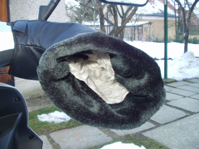 taketo nieco si zadovazim aj ja. Chcel som trochu ine co boli v teme u kolegu. Dakujem duky5 za kontakt ktory poslal, ale nakoniec som ho ani nepouzil lebo na Ebay som nasiel nieco obdobne. Vo vnutri je umela kozusina a zvonku je to tiez taky nepremokavy material. Dnes som to len vyskusal nahodit na moto. Je to univerzal takze to pekne paslo. Tam, kde je ten pasik je suchy zips. Tam sa to odopne zalozis stlpik zrkadla a spat zapnes. Foto na skutriku dolozim neskor.