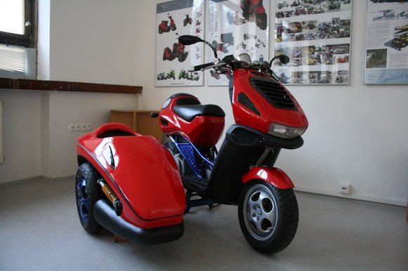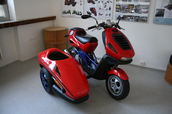 takze predstavujem vam svoju diplomovku a teda sajdku pre maly motocykel. Nie je urcena pre ludi. ten otvor tam je len pre mojho havka. Dali mi z nej sice dost blbu znamku ale myslim si ze vysledok je celkom v pohode ...