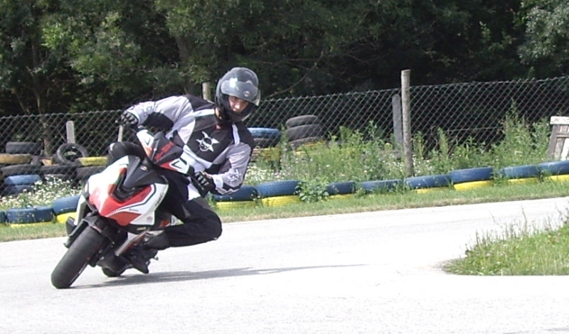 na mokrej trati sa nedalo jazdiť po dvoch kolesách a bez pomoci nohy to zákrutou ani nešlo
