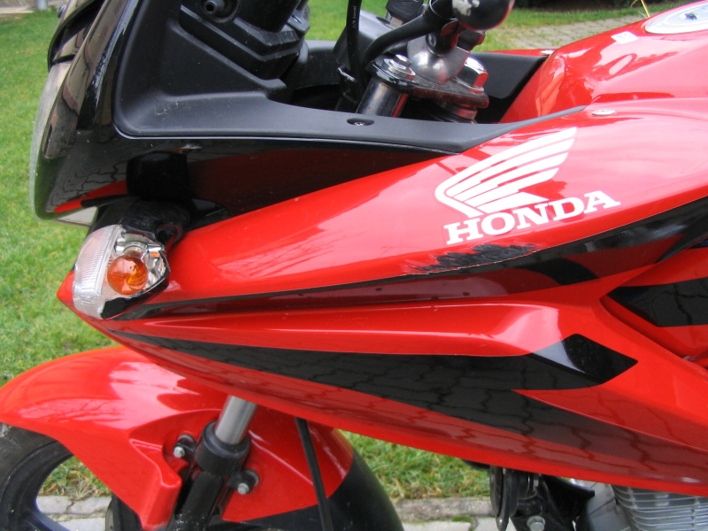 Predstavujem vám moju novú Hondu CBF 125. Nakoniec sa všetko podarilo a dnes som si ju dovoezol zo Svätého Jura. Motorka bola kupovaná v júni tohoto roku a preto som sa nakoniec rozhodol pre túto motorku, lebo je ešte v záruke. Pôvodne som chcel nejakého maxiskútra, dokonca som mal už vyhliadnutého nexusa 500 v čechách ale cena aj keď bola dobrá v prepočte asi 3 000 € bola nad moje možnosti. Potom som nečakane objavil túto ponuku a bola podľa mňa za dobrú cenu 1 400 €. Je síce padnutá na jednej strane ale odniesla si to iba smerovka a bočný plast je oškretý. Myslím že to nebude problém opraviť. Ešte som zistil že je zlomené zadné svetlo takže trochu hrkoce , ale aj to nejak vyriešim. Týmto určite neopúšťam rady skútristov, samozrejme zo všetkými čo sa stretávama v okolí ZM sa budem veľmi rád stretávať aj naďalej a jedného dňa by som sa rád vrátil k tomu čo som mal vysnívané.