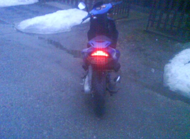 no chalani neska cestou zo skoly bolo tak fajne teplucko tak hned ako som dosiel domov som pekne nahodil predok a prilepil si paskou spz :) no lenze po mesiaci odychu sa mu velmi nechcelo startovat :)po pol hodine presviecania a kopania do nakopavacky konecne naskocil :)som sa naobliekal ako snehuliak a som sa isiel vozit :) som isiel do mesta a nabehal som tak 15-20km stoho asi 10 v dazdi ale newa :) konecne som sa aspon povozil a mam aj dake fotky :) sice len mobilom ale aspon nieco :) cely zafkany ale newa .)