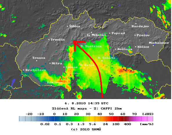 Poznámka pekne vidieť aká búrka sa tiahne popri Hrone smerom na sever.