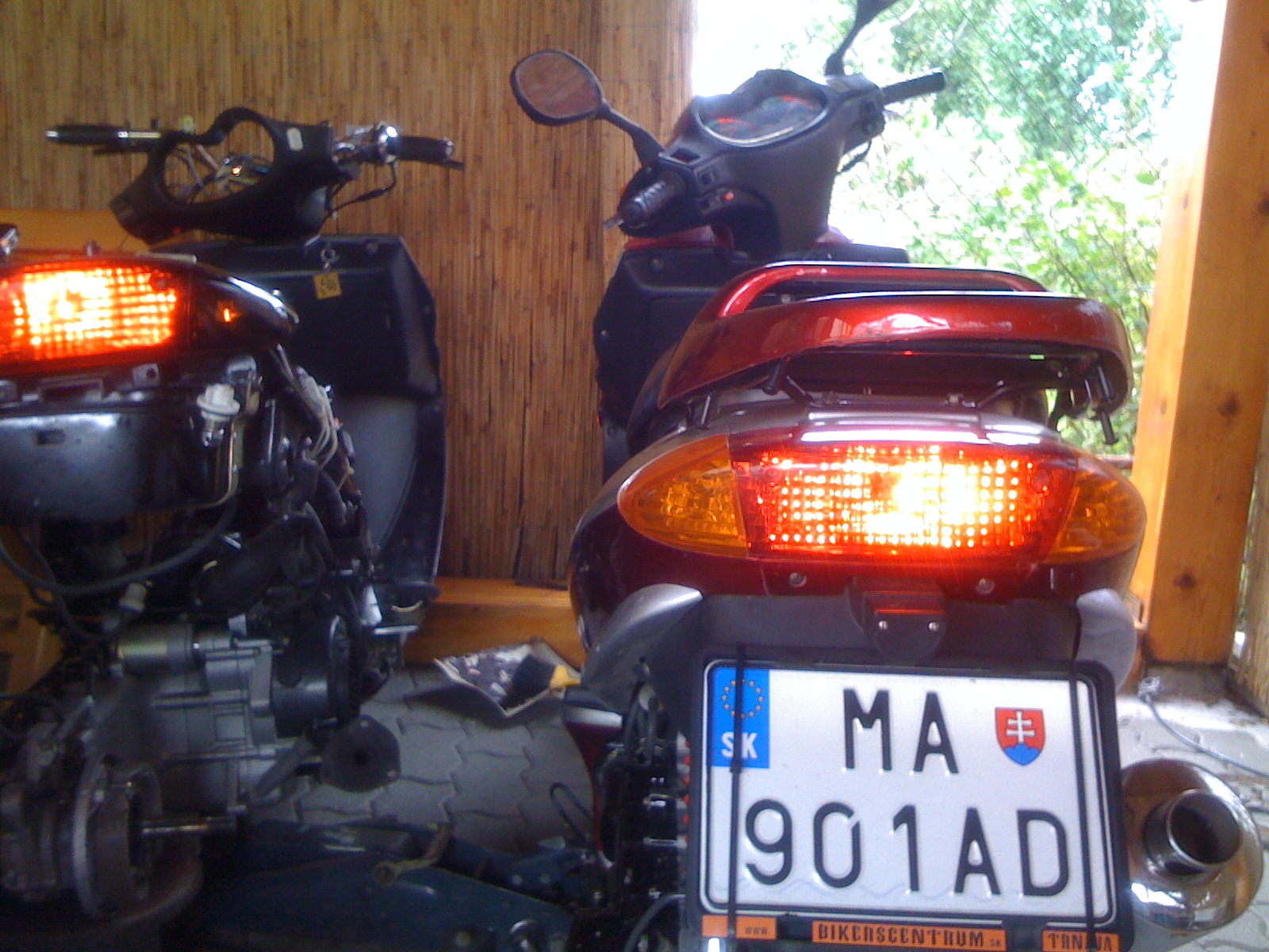 Tak tu je porovnanie..Zadné svetlo je len trocha tmavé..Smerovky su čierne..Svietivosť?Mne sa zdá taka istá..Aj keď na fotke kde porovnávam smerovky je to trocha menej..Ale vonku sa mi to zdá tak isto.Ale samozrejme nastaviť smerovky aby išli koordinovane nie je lahké