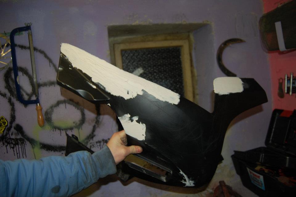 včera u makiča som sa začal hrať s tým spodným prasknutým bruchom celkom som to dobre pozváral na to že som to robil prvý krát .. dnes u marka som to brúsil aj tu bočnicu a zadný plast som laminoval diery na držiak na kufor ostatné foto prida marko ..
